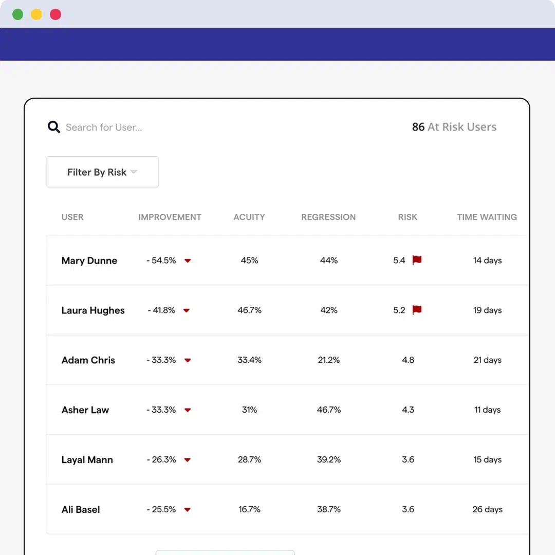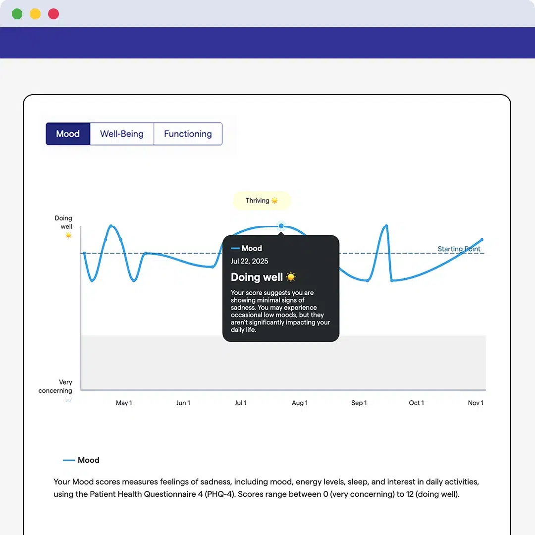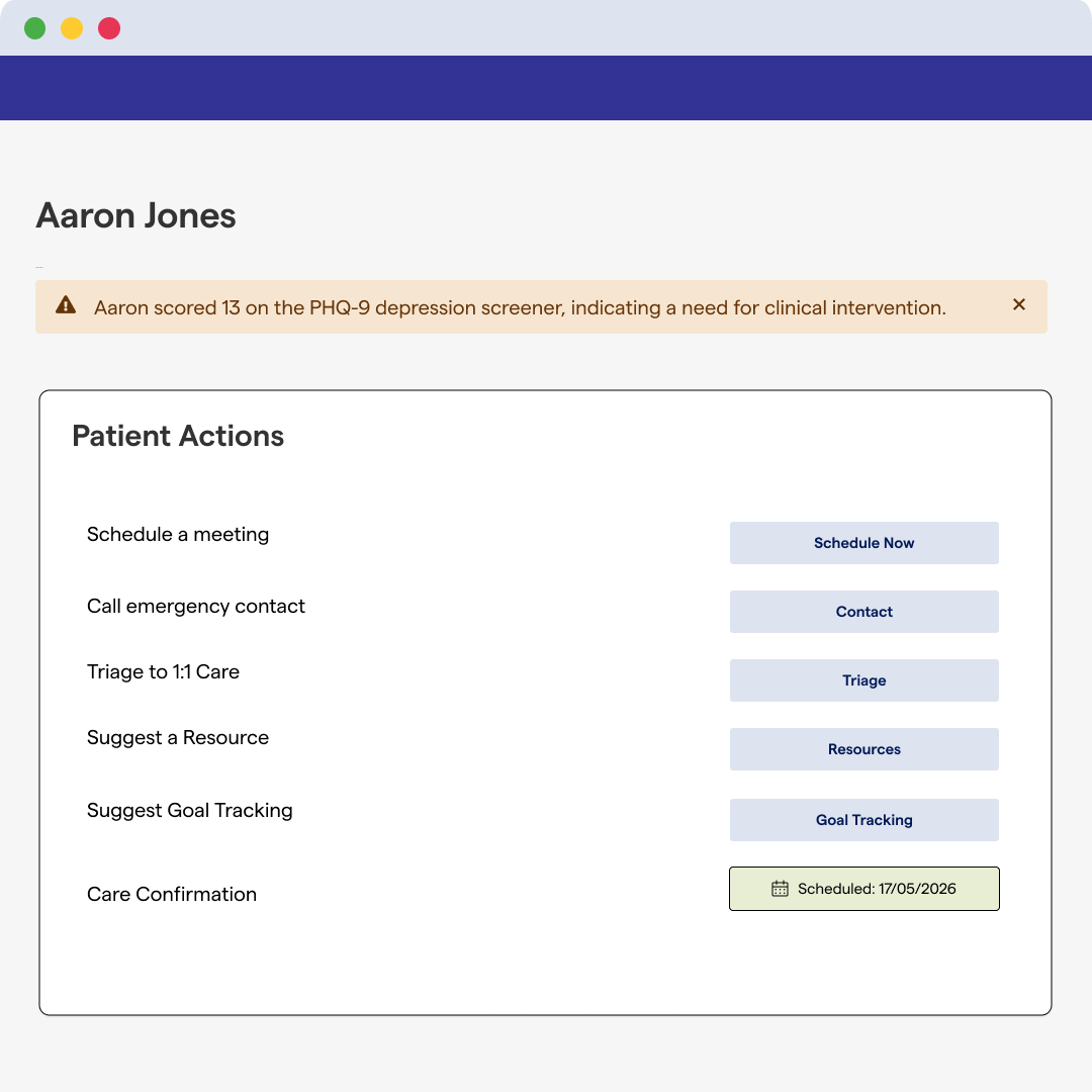 Boost member satisfaction and improve outcomes through data-driven, personalized care at scale. Whether supporting Medicare, Medicaid, or commercial members, our Population Health Hubs enable early identification of behavioral health need, timely support, and clear pathways to care. Plans maintain an auditable record of screening, follow-up, and confirmation of care, supporting compliance and quality reporting. For Medicare Advantage plans, this same foundation directly supports Star Ratings performance improvement. Real-time analytics and population-level insights help plans surface gaps in care delivery and use engagement and outcomes data to drive continuous quality improvement. By supporting members throughout their care journey, health plans improve outcomes, strengthen member experience, and ensure people receive timely, appropriate behavioral health support.