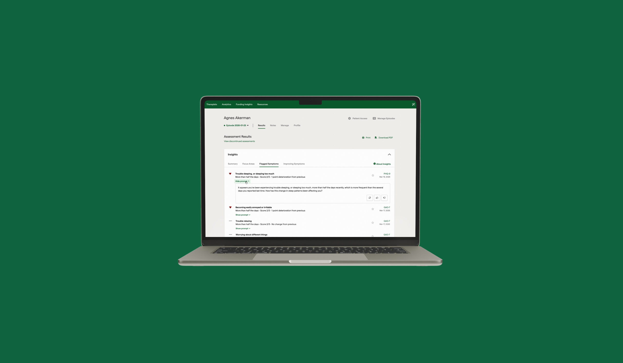 Grounded in the principles of Measurement-Based Care (MBC), individuals are empowered to monitor their mental health through bi-weekly self-assessments. This continuous tracking allows individuals to better understand their own mental health, recognize periods of increased struggles, and more actively participate in their own wellness journey. Data shows that this approach significantly increases engagement and retention in resources and services, and that individuals who consistently complete self-assessments report greater symptom improvement. With a stronger understanding of their own mental health, people can engage in resources and care that are most appropriate for their challenges leading to improved outcomes, alleviating demand on high-cost services, and providing more timely access to acute care for those most in need.